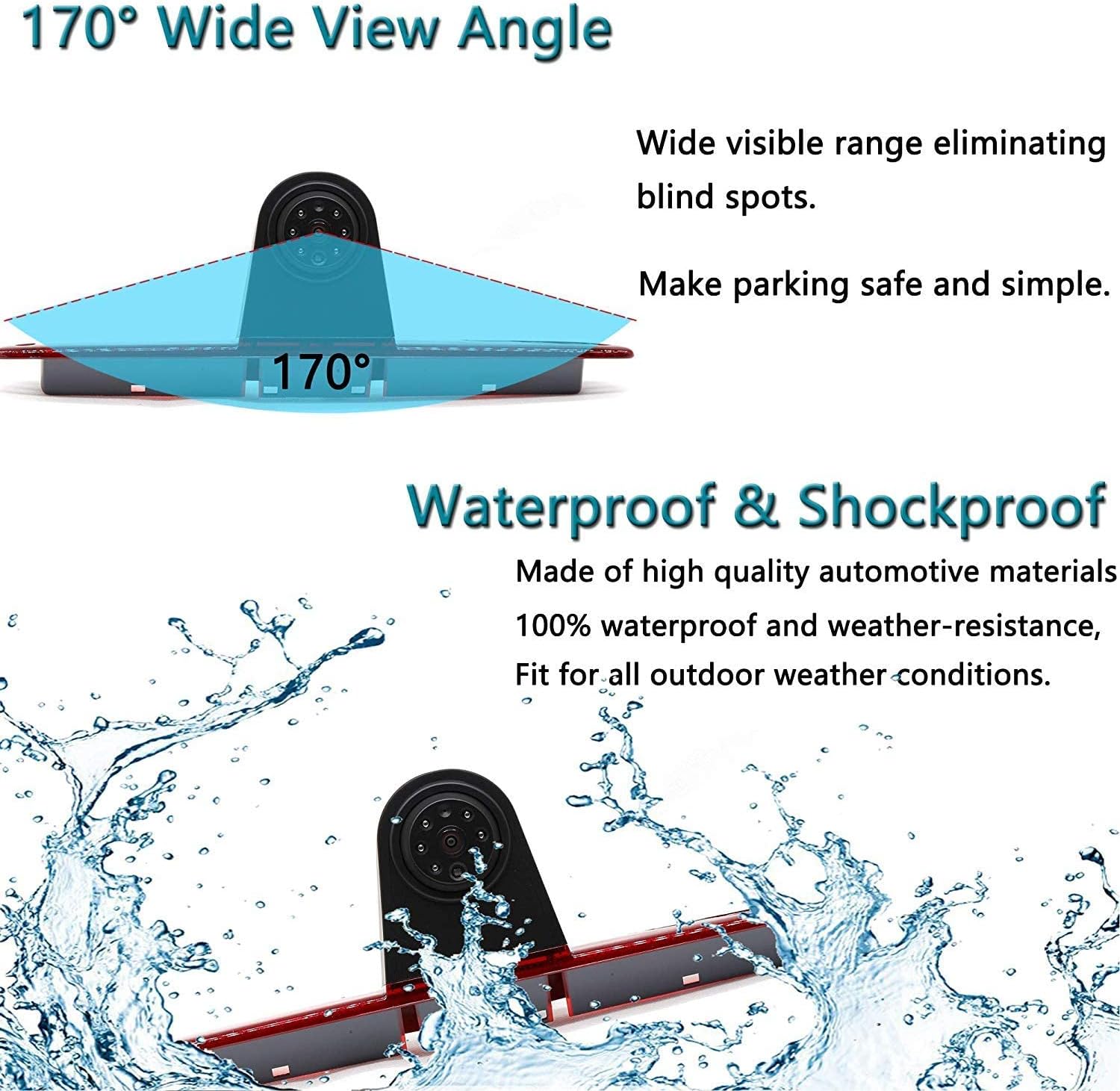 EWAY 3rd Third Brake Light Backup Camera for Mercedes Benz Sprinter Volkswagen VW Crafter Vans 2007-2019 Roof Mount Reversing Camera for Top Rear Brake Light 8 IR Light Night Vision Rearview Camera
