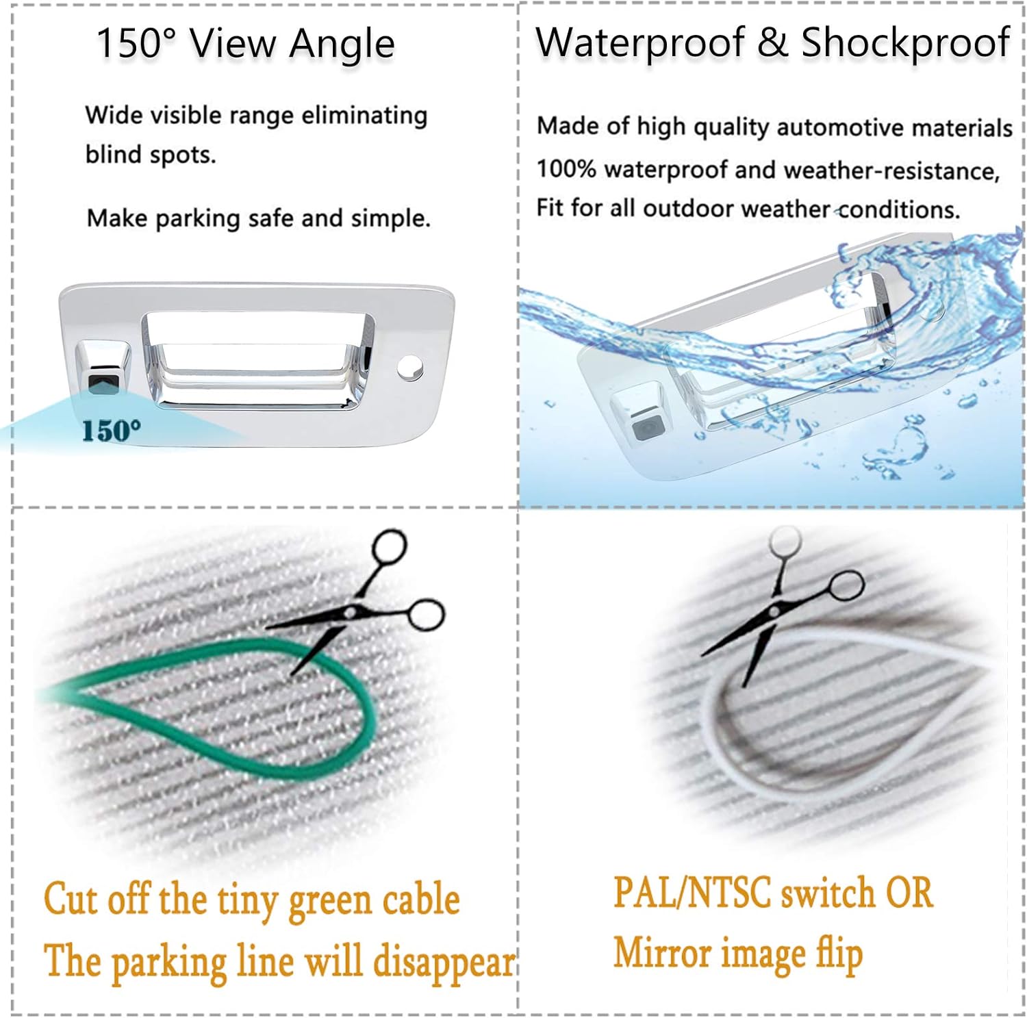 EWAY Tailgate Handle Backup Camera for Chevrolet Silverado GMC Sierra 1500 2007-2013 2500 3500 Heavy Duty 2007-2014 Waterproof Removable Guide Line Reversing Backing Cameras Chrome