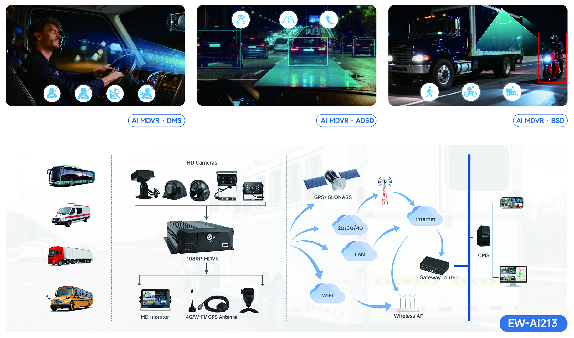 EW-AI213 AI-Powered HD Video Recording System (DMS + ADAS)