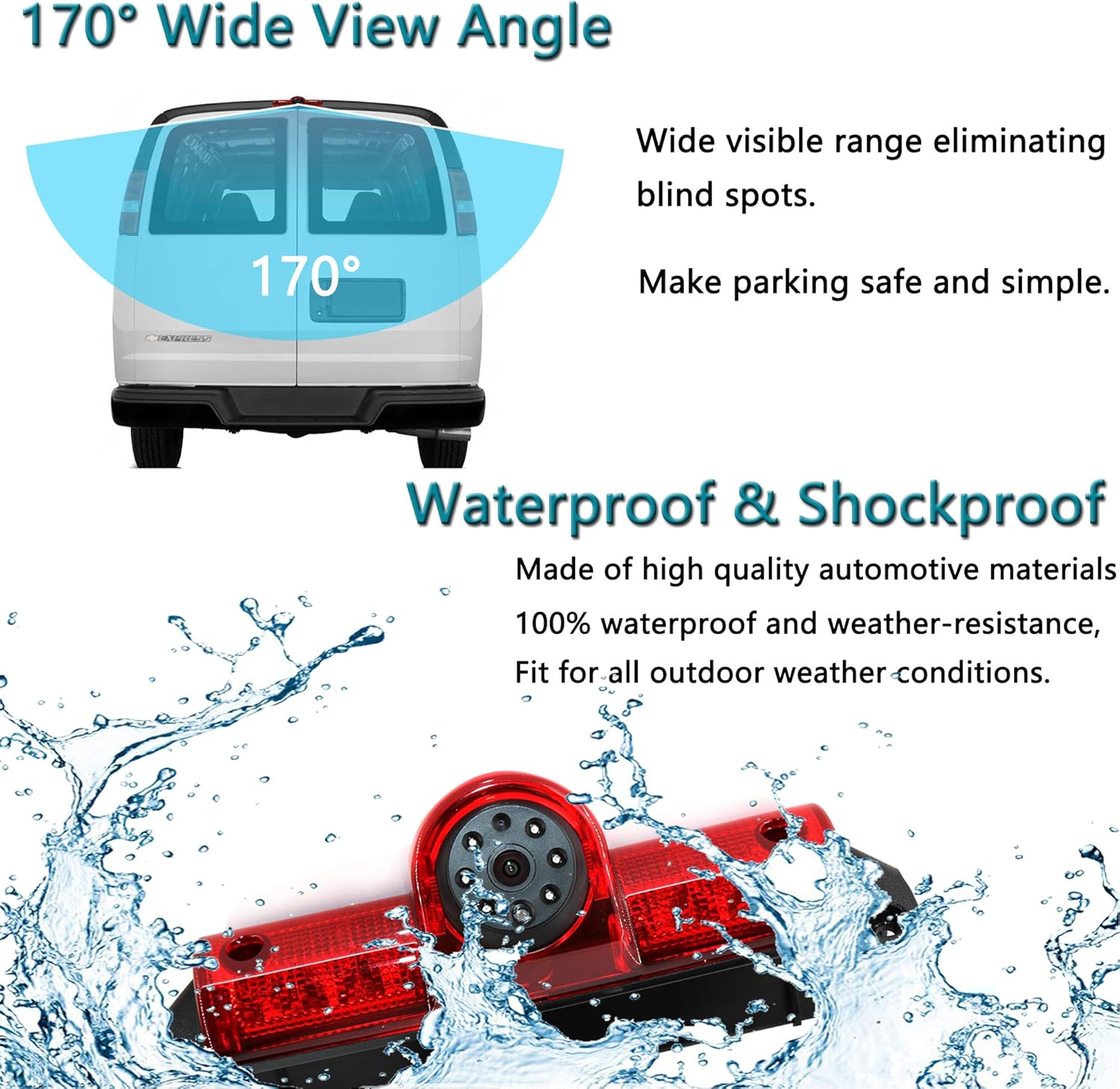 EWAY 3rd Third Brake Light Backup Rear View Camera for GMC Savana Chevrolet Express Explorer Cargo Vans 2003-2016 w/ 6 IR Lights Reverse Auto Parking Car Safety Reversing Backing Cameras
