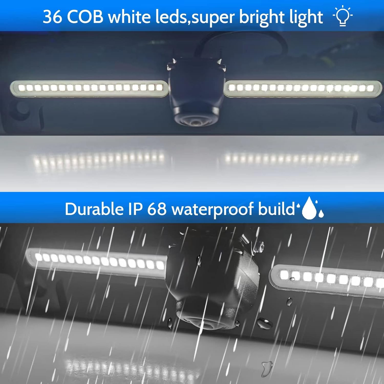 - 【Clear Night Vision】Rear license plate pure white backup light is combination of 36 white leds Lamp and camera with CMOS image sensor, 972(H) x 504(V) Resolution which will display a clear color image, give you clearer night-vision without picture distortion.