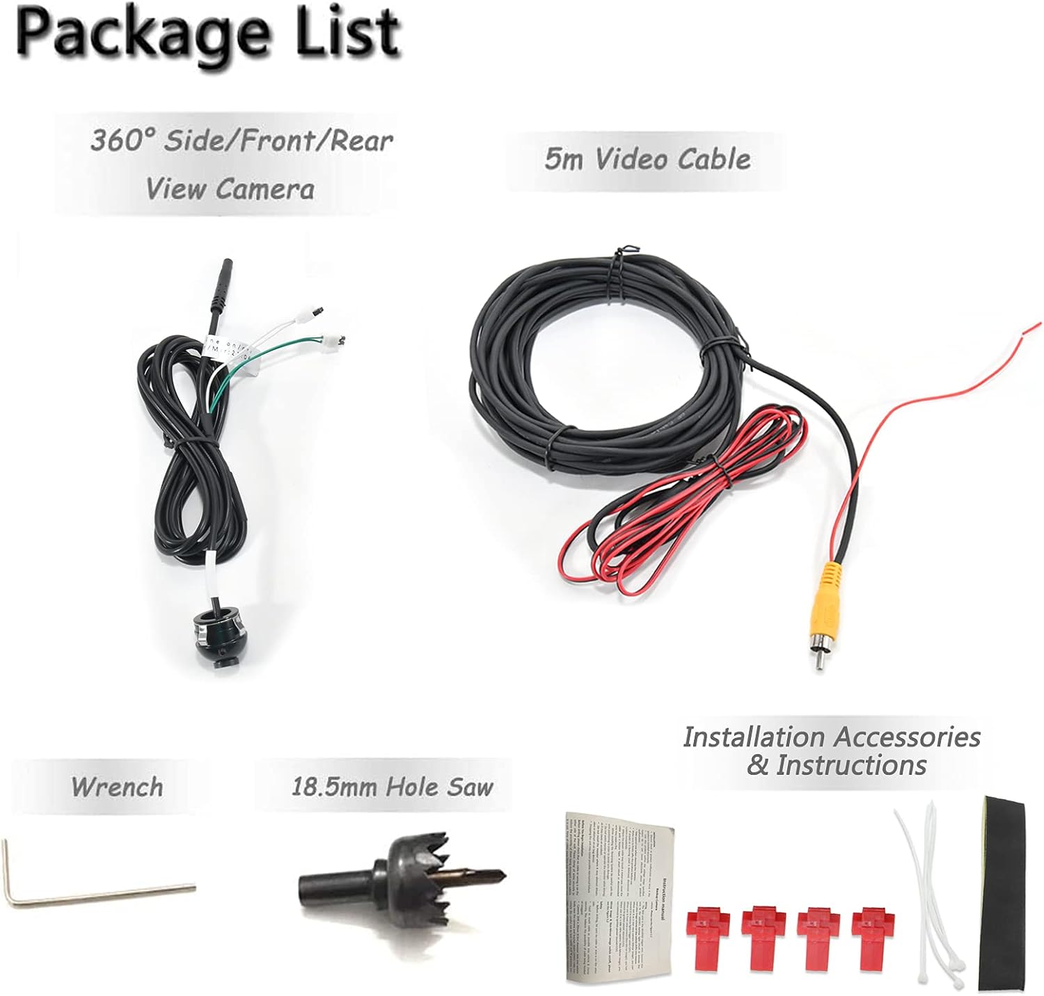 - ★【Drilling holes will be required】With 18.5mm hole saw, hole drilling installation to hide to be almost invisible. Fit all car models. Connect the camera power cables to your side lights 12V as automatic trigger.