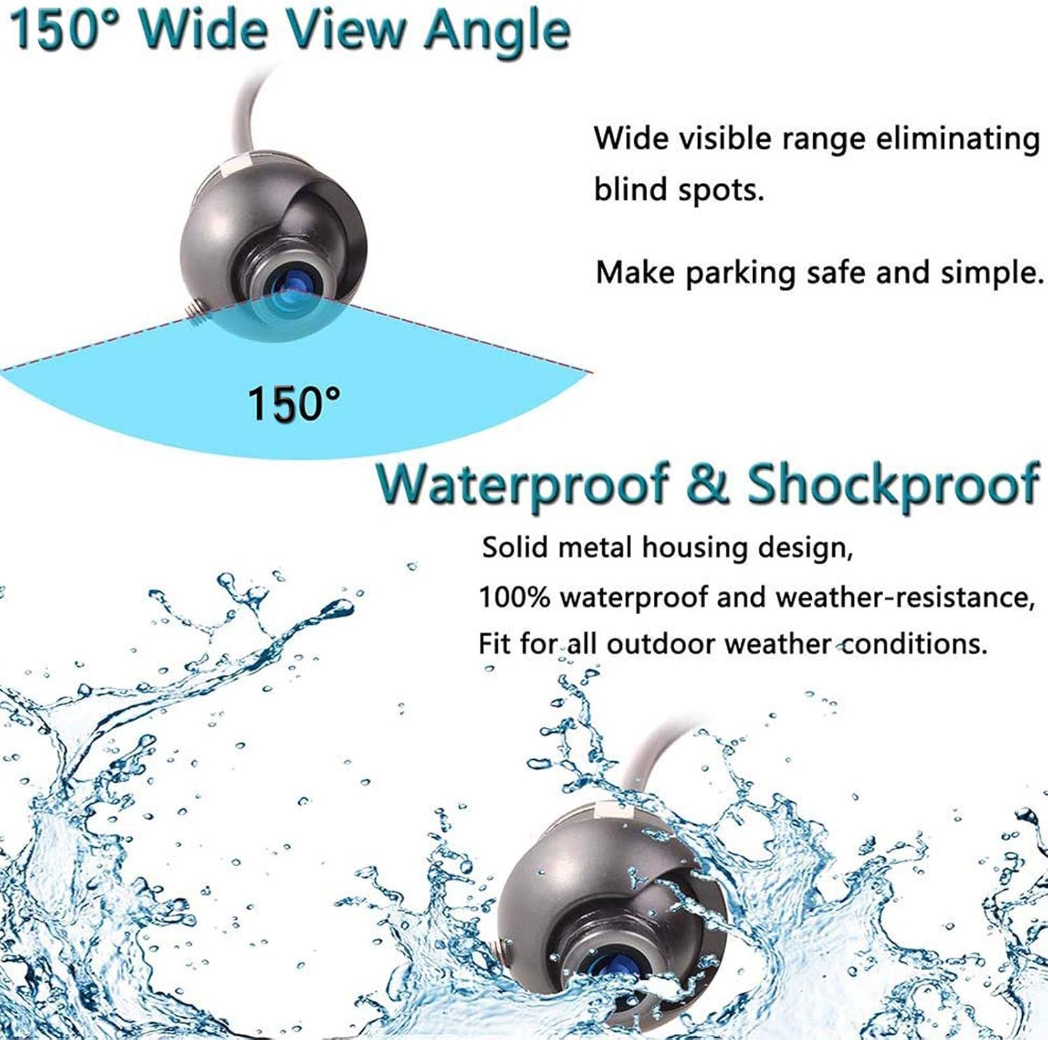 - ★Mini vehicle camera, with 150° wide viewing angle, the image is high-definition and more realistic, make parking safe and simple.