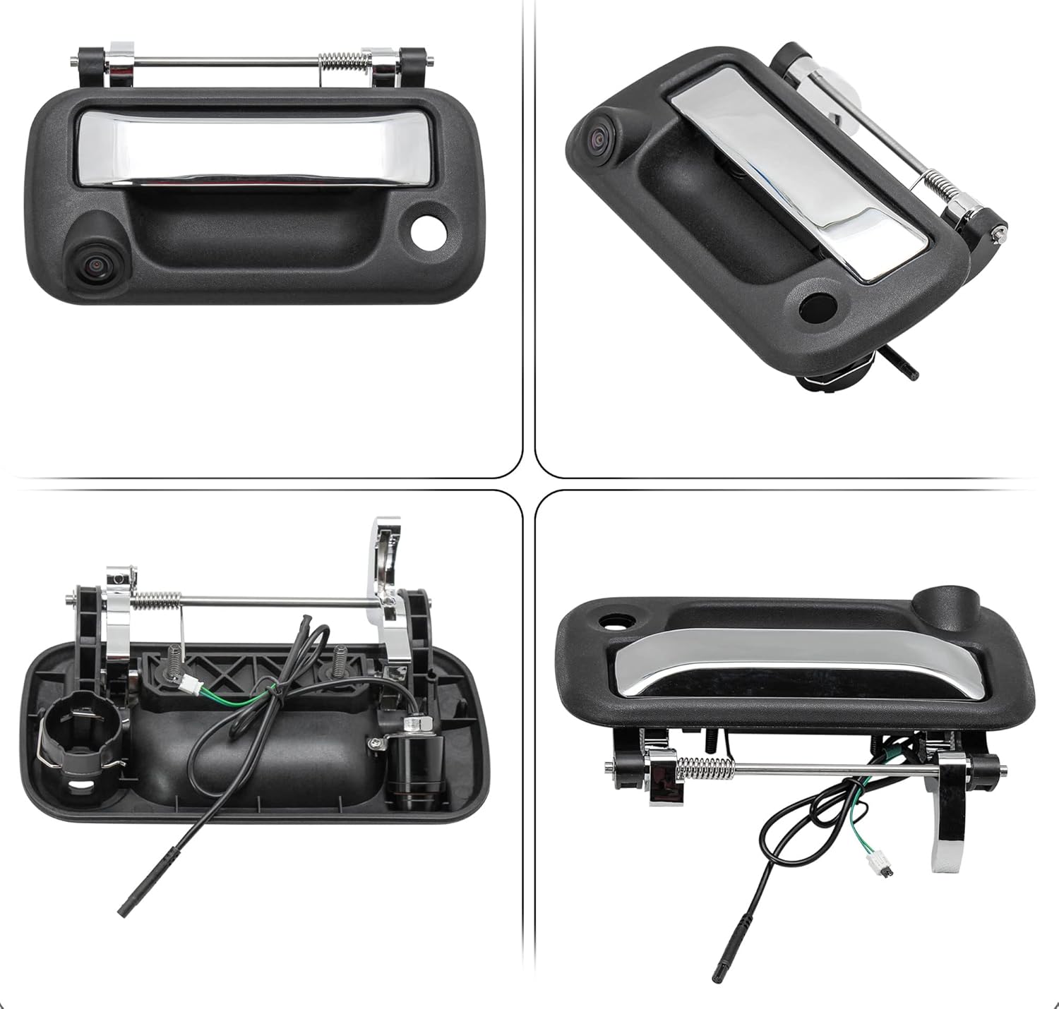 - 【Fits and Feel Like OEM Handle】 Factory black texture and chrome tailgate handle backup camera kit for Ford f150. Replace OEM tailgate handle latch at your truck rear gate door, add on a clear rear view for reversing. Designed to match the dimensions and specifications of the OEM factory part of your ford pickup truck tailgate door handle.