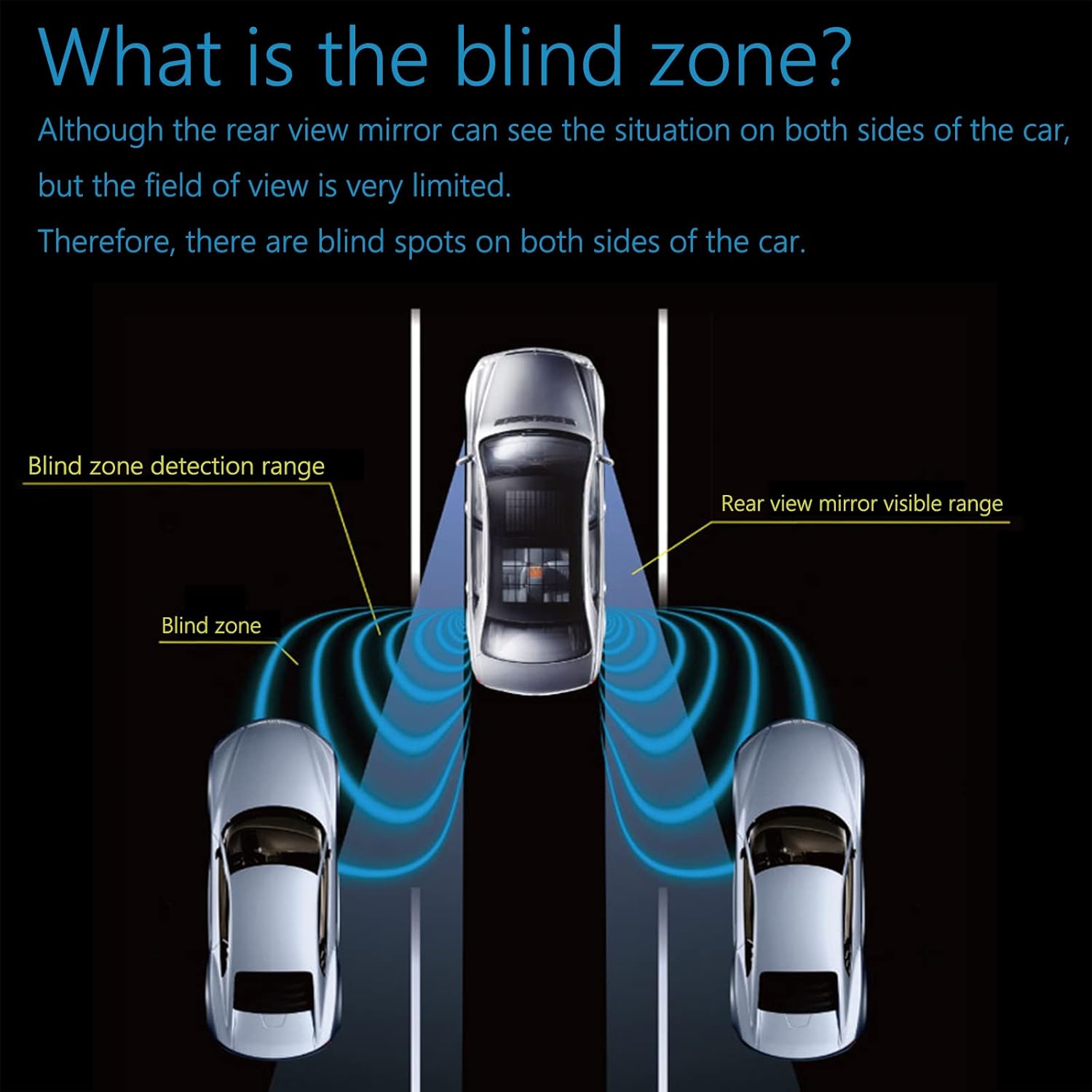 - 【Blind Spot Detection System】There is blind zone at the rear of the vehicle which is easy to endanger driving safety! This system is a vehicle assistance device that helps driver lane changing safely during driving.