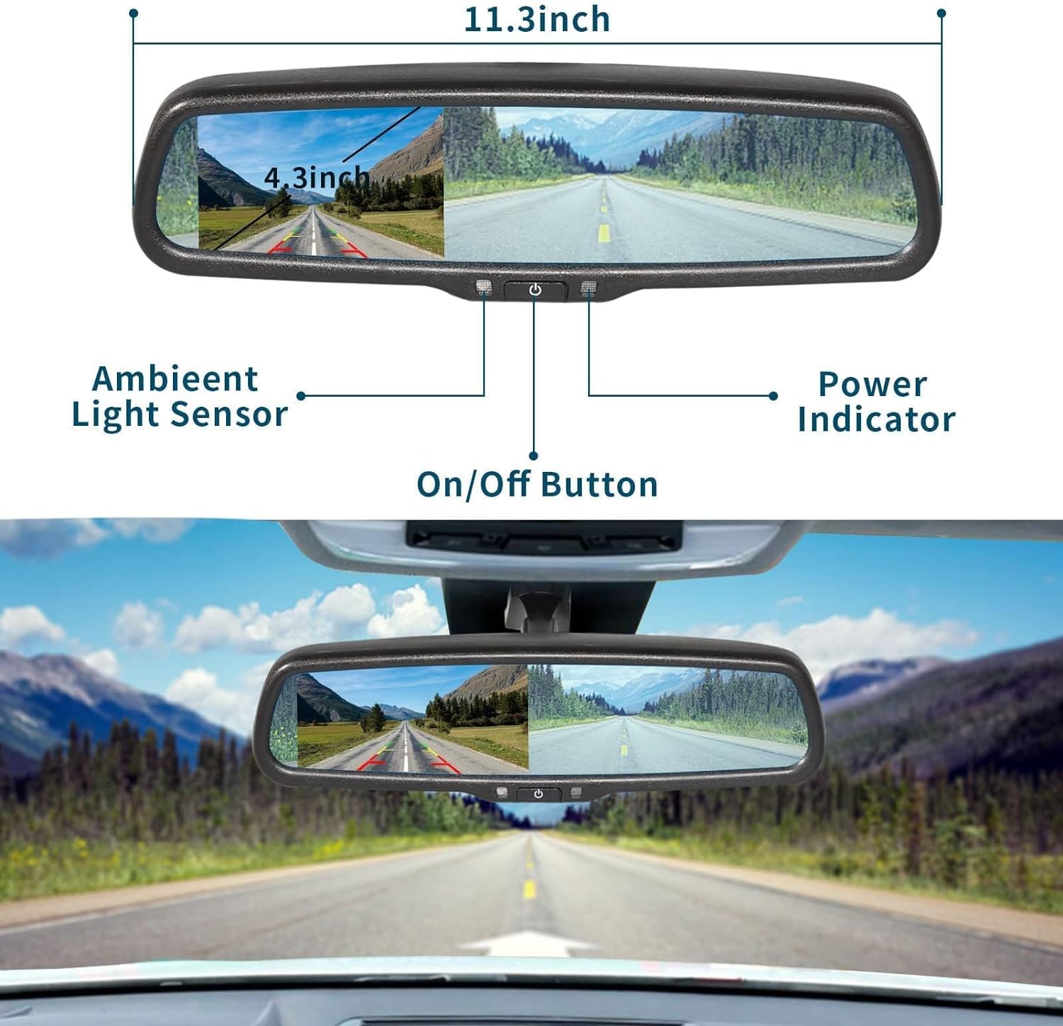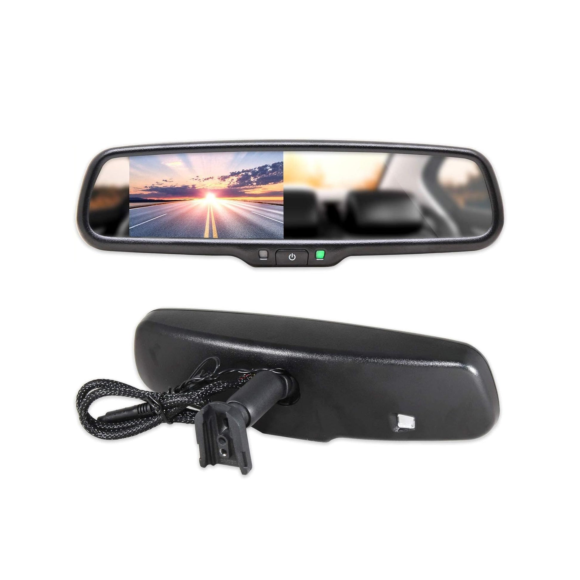- 【OEM Look Rearview Mirror Monitor 】This 4.3 inch Auto Dimming Mirror Monitor with a OEM bracket mounting can replace your original mirror completely without any damage or vibration.